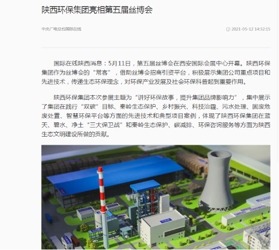 国际在线陕西消息:5月11日,第五届丝博会在西安国际会展中心开幕。bsports集团作为丝博会的“常客”,借助丝博会招商引资平台,积极展示集团公司重点项目和先进技术,传递生态环保理念,对环保产业发展及社会环保科普起到重要作用。