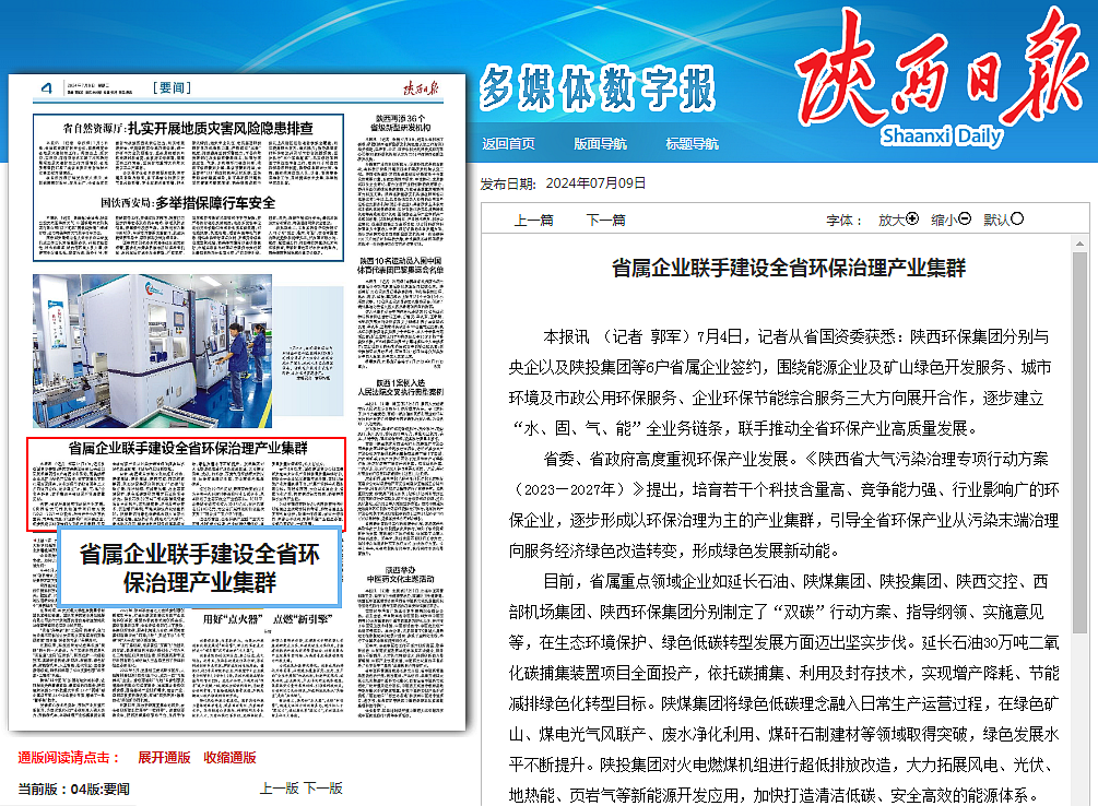 7月9日,陕西日报以《省属企业联手建设全省环保治理产业集群》为题,对bsports集团举办陕西国企生态环保业务合作座谈会和服务全省环保产业链发展等情况进行了报道。现刊载如下,以飨读者。